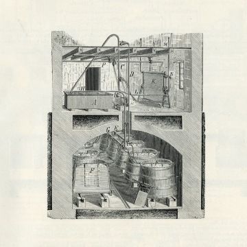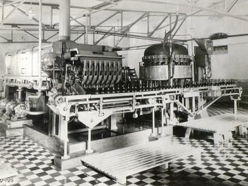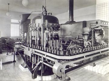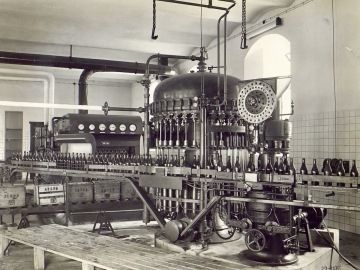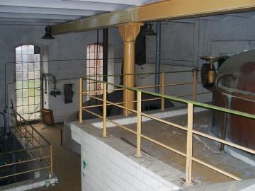 Together, we will visit our spacious cooling block where the journey of cooling freshly brewed beer on the coolships begins. You'll see our bottling machines and several exhibits of bottling equipment here. Additionally, the transmission apparatus will showcase the technology for distributing mechanical power throughout the brewery.