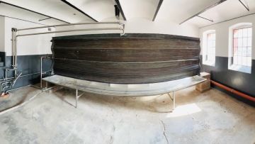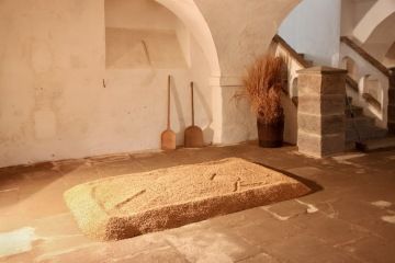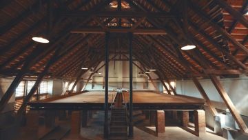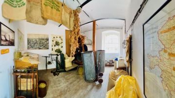 The first part of our brewery exhibition awaits you in the malthouse. We'll introduce you to the malting process and the technologies used for germinating malt. You'll see our brewery carts, malting tools, mechanization for malting, and the steeping tank.