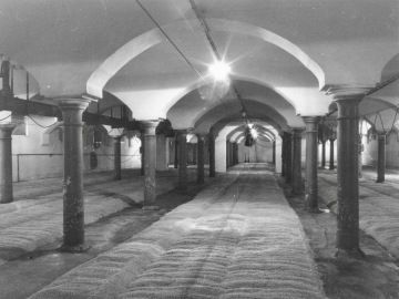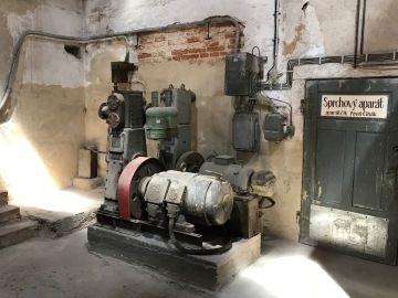In the space of our small malting floor, you'll have the opportunity to view two important malting exhibits. The first is a late Renaissance stone steeping tank from the demolished brewery in Červené Záhoří. The second is an air-piston compressor used for aerating soaked barley.