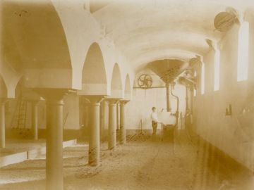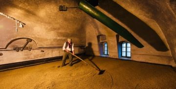 In our brewery courtyard, you will see the cooperage and learn about the cooper's craft and the production of brewery barrels. Together, we will visit the exceptional landmark of our brewery courtyard, the windmill, and you will see an exhibit of a functional ice elevator.