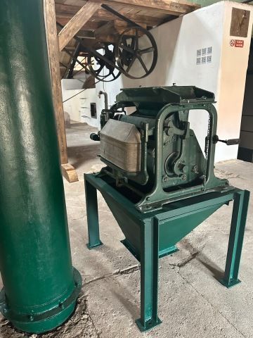 In the area of the brewhouse loft, you'll find brewery technologies that typically precede the mashing process. Here, you'll see a malt mill, an elevator for transporting malt, and a hot water tank. Additionally, we exhibit functional barley cleaners used during grain intake for malting.