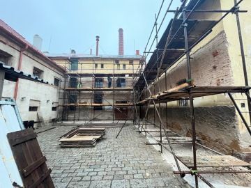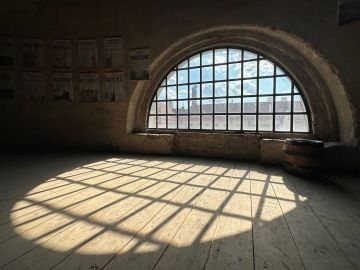 We begin the tour at our visitor center in the courtyard on the right, where the brewery's bottling plant used to be. You'll be greeted by a guide who will briefly introduce the site and outline the tour. To start, there will be a short video presentation about the history of the brewery and the preservation efforts of exhibits and technologies from closed breweries.